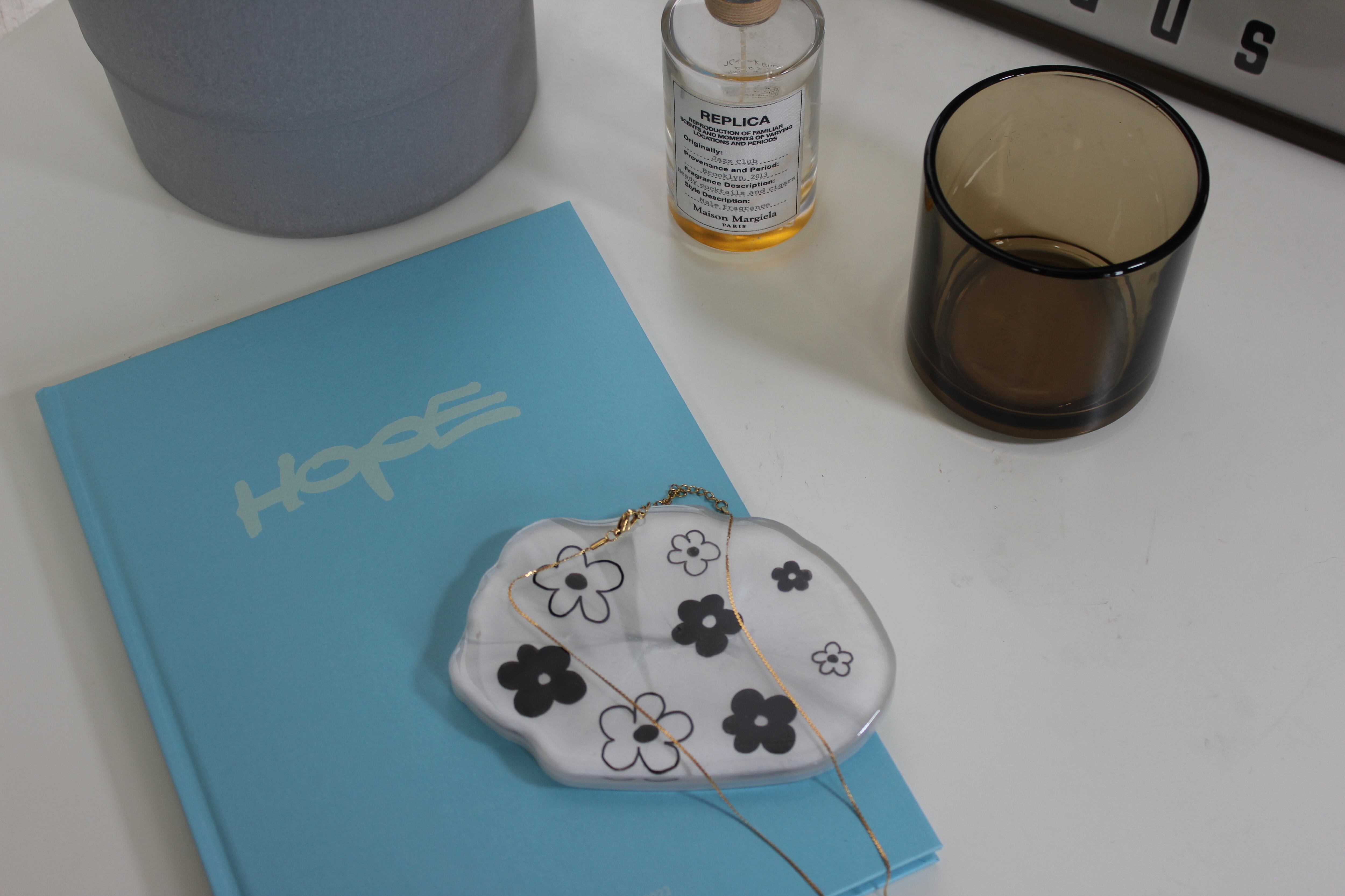 ハンドペイントでお花のイラストを閉じ込めたレジン製コースターです。
