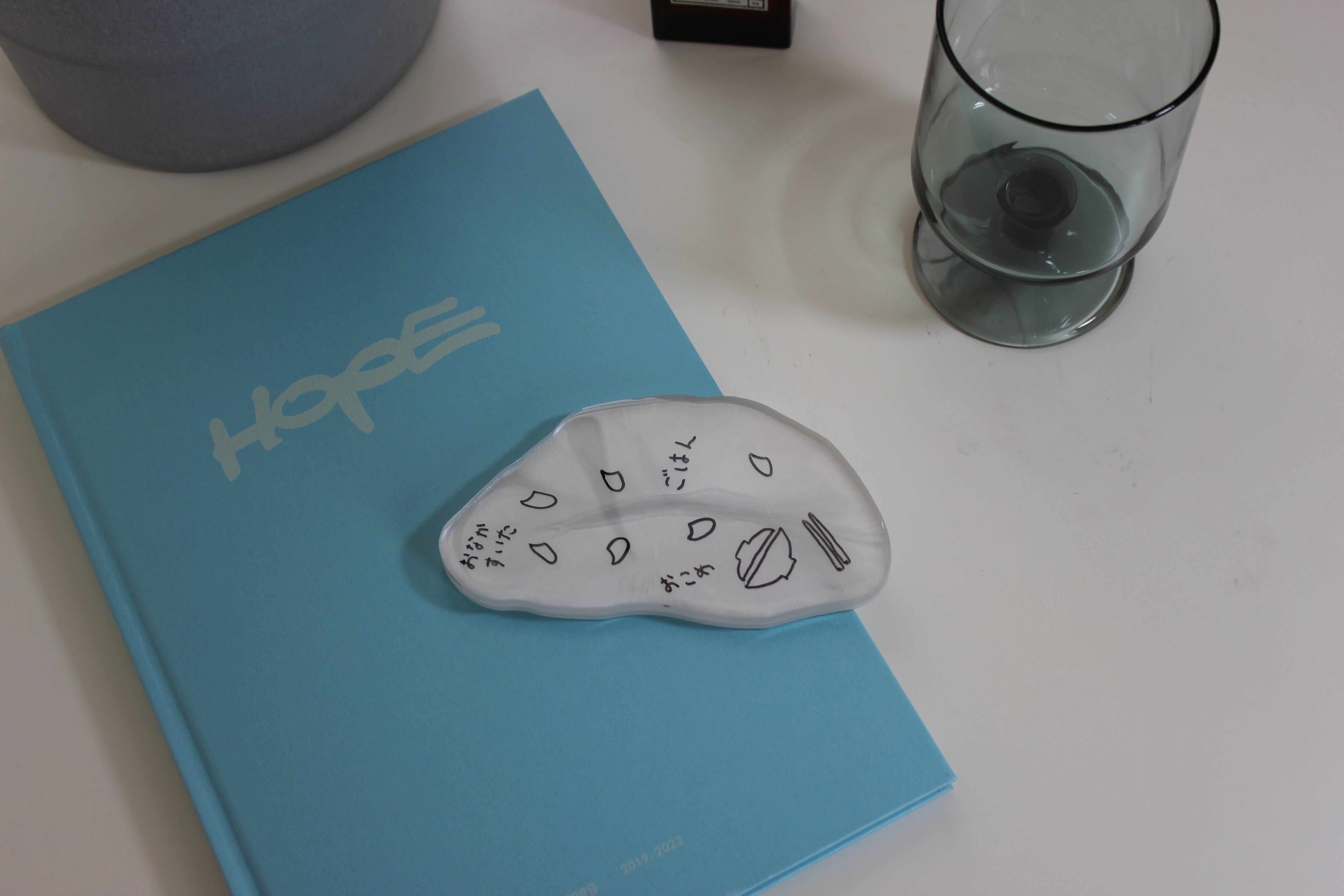 ハンドペイントでお腹が空いた様子をイラストにして閉じ込めたレジン製コースターです。