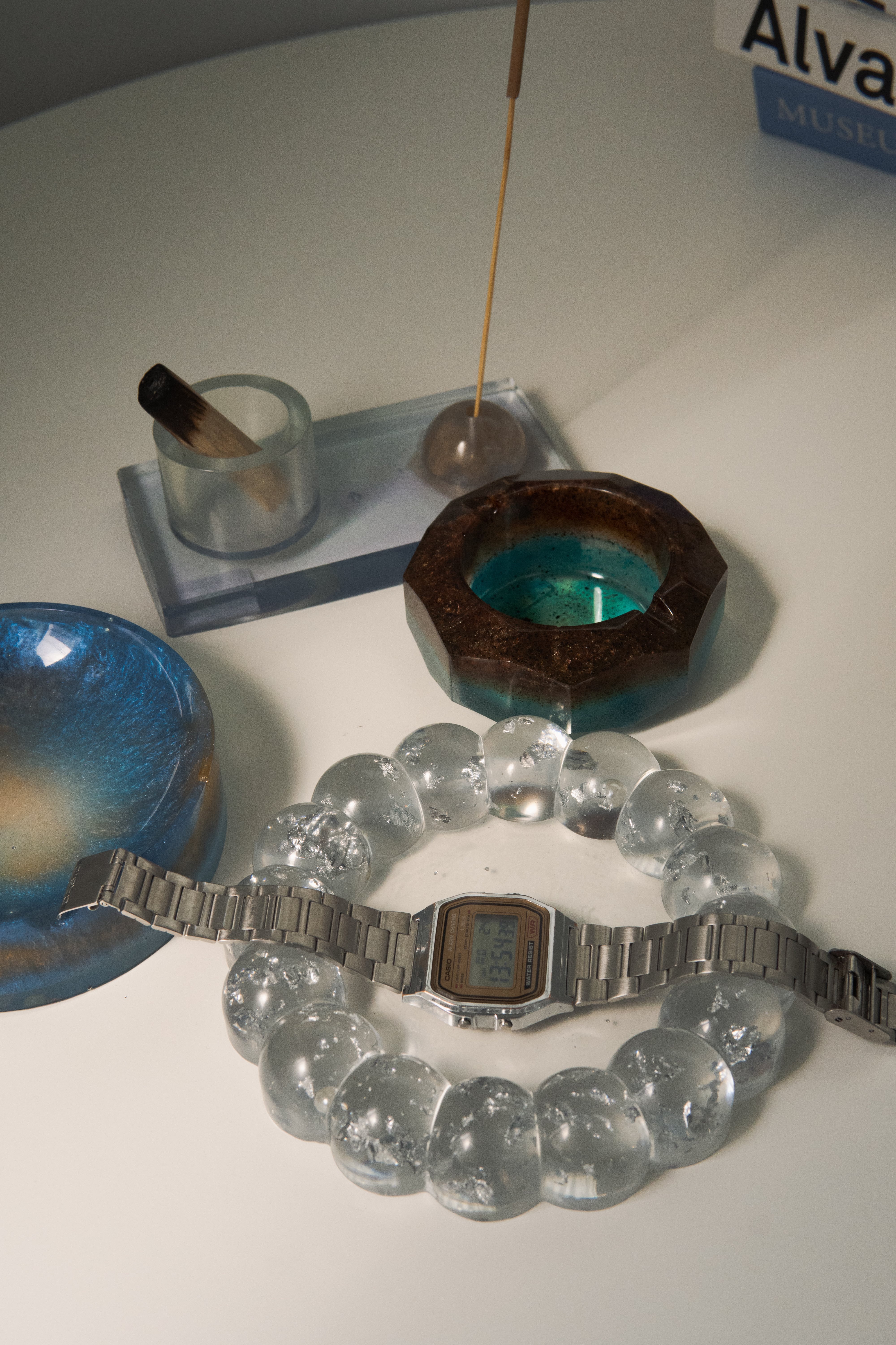 二層に色分けし、無機質の中に温かさを持たせたレジン製お香・キャンドル立てです。