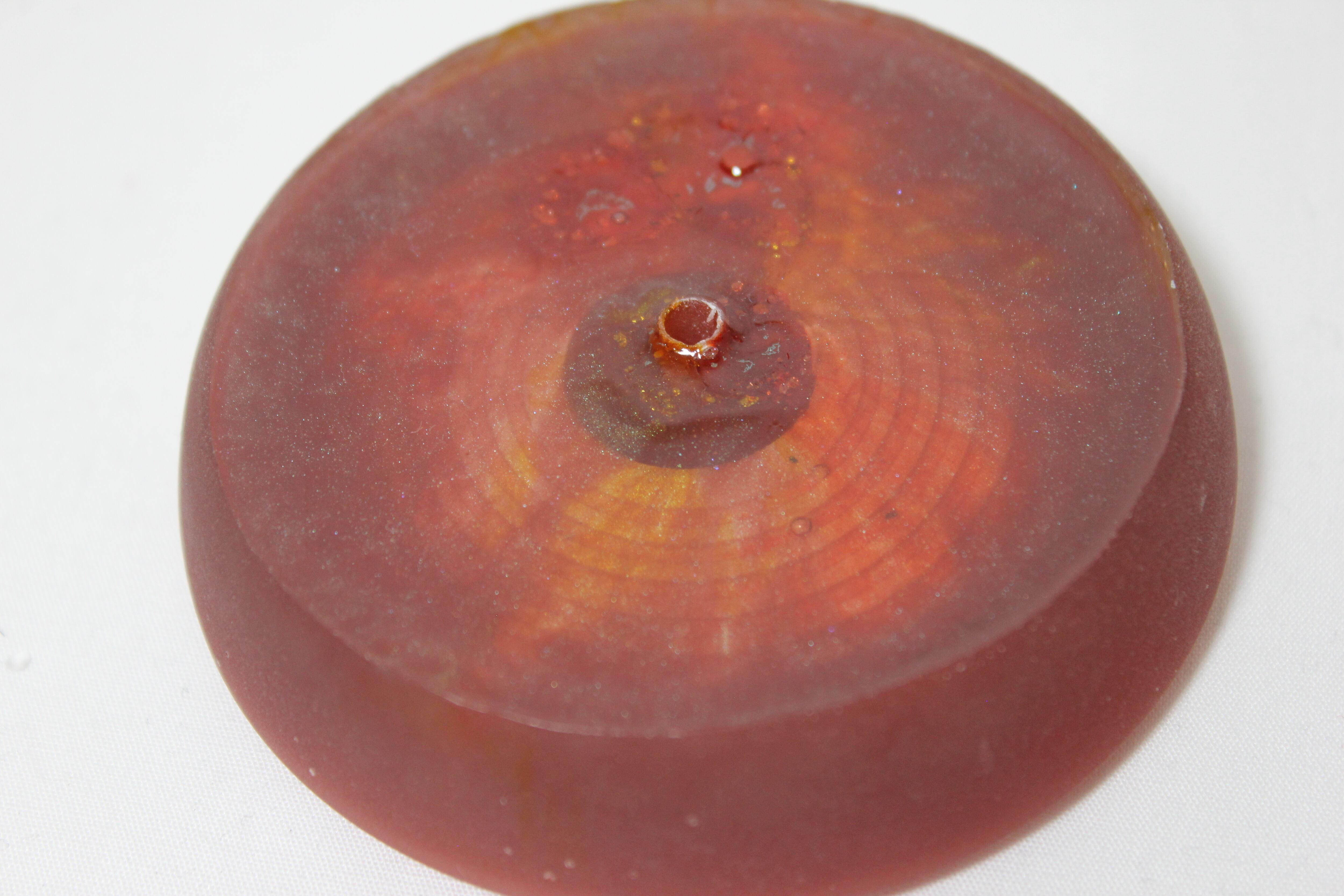 赤、黄色と少しの緑で情熱的な赤色を表現したレジン製お香立てです。